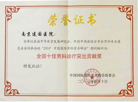 全國十佳男科診療突出貢獻單位